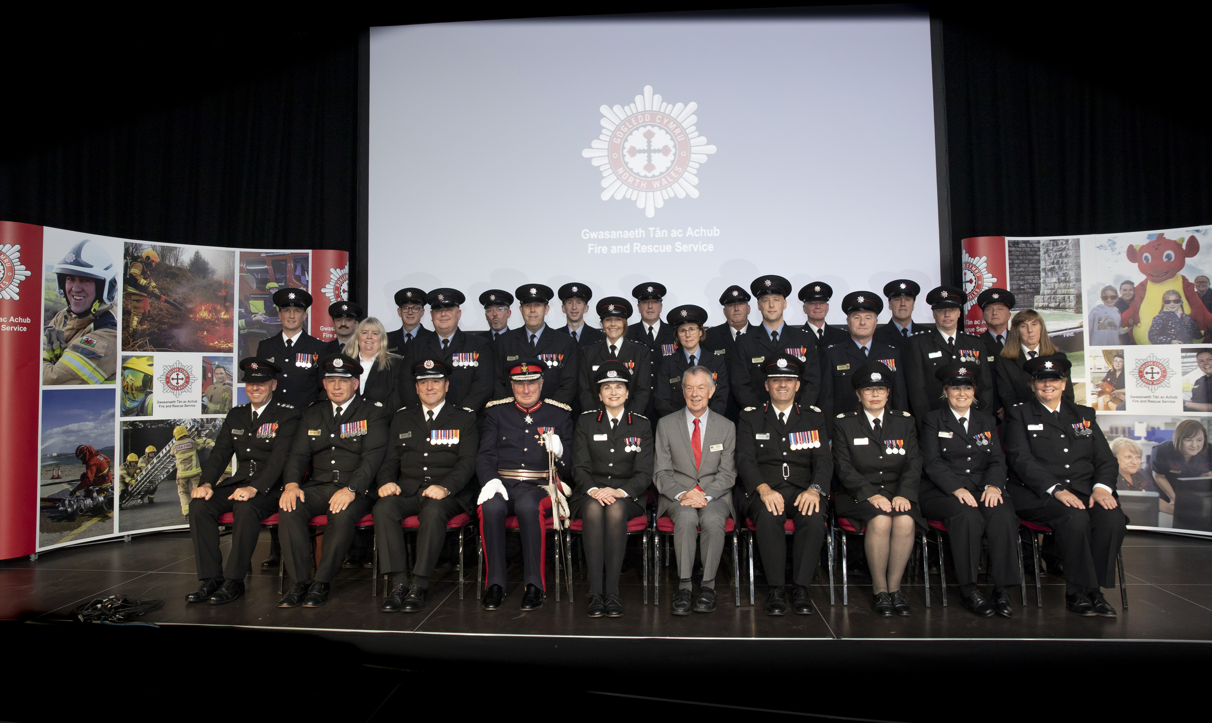 Cyflwynodd Arglwydd Raglaw Clwyd, Mr Harry George Fetherstonhaugh, OBE, Fedalau Gwasanaeth Hir ac Ymddygiad Da a chlasbiau 30 a 40 mlynedd i staff gweithredol y Gwasanaeth yn ystod seremoni wobrwyo a gynhaliwyd yn Venue Cymru nos Fawrth 30 Medi.